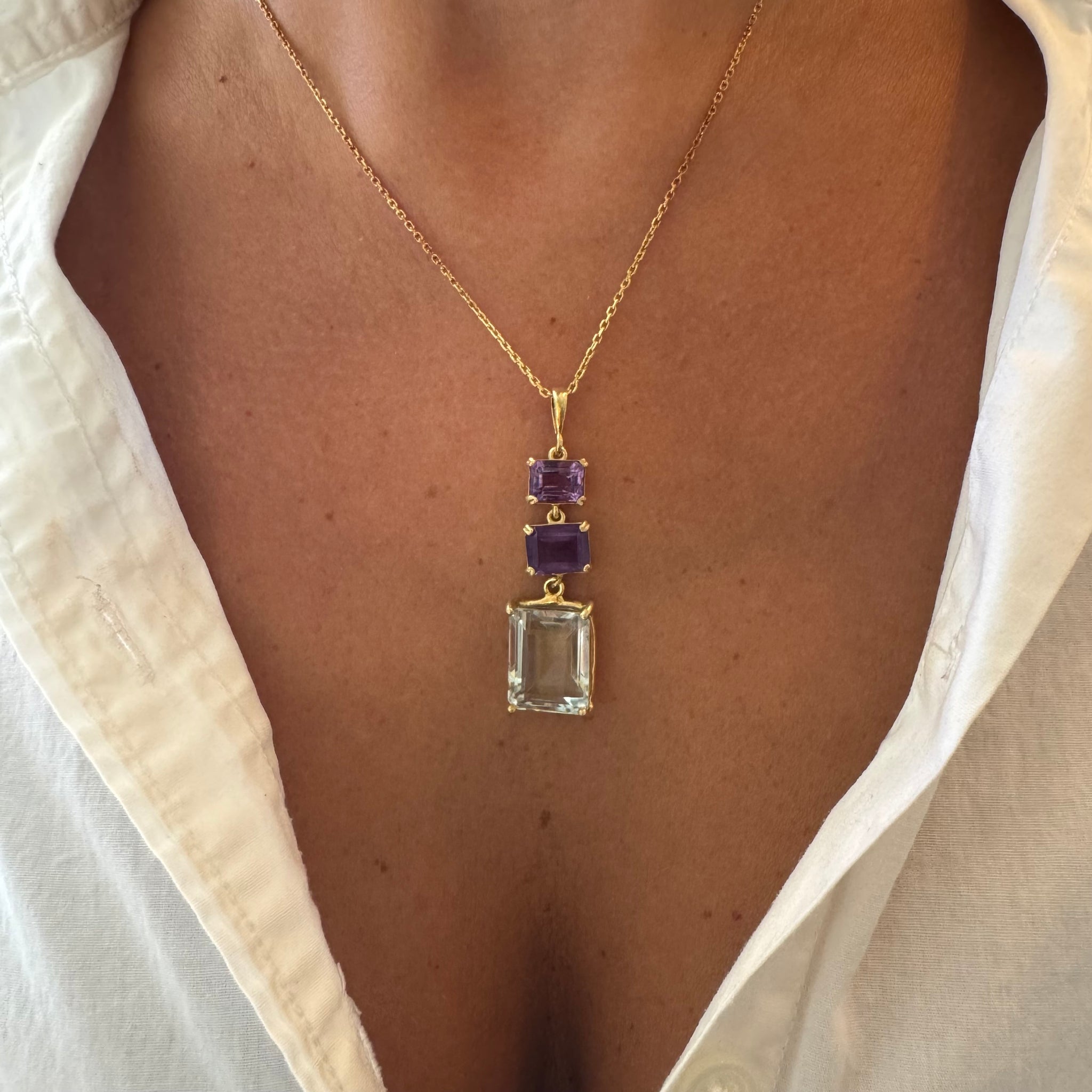 Silver - Green Amethyst and Amethyst Necklace